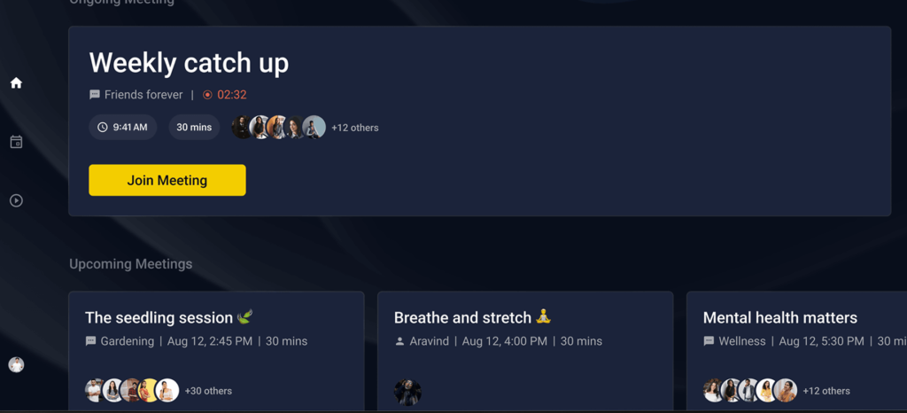 Meetings | Schedule & host meetings with titles, time zones, and co-hosts |