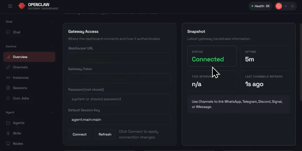 Gateway Control PlaneCentral hub for sessions, tools, and channels